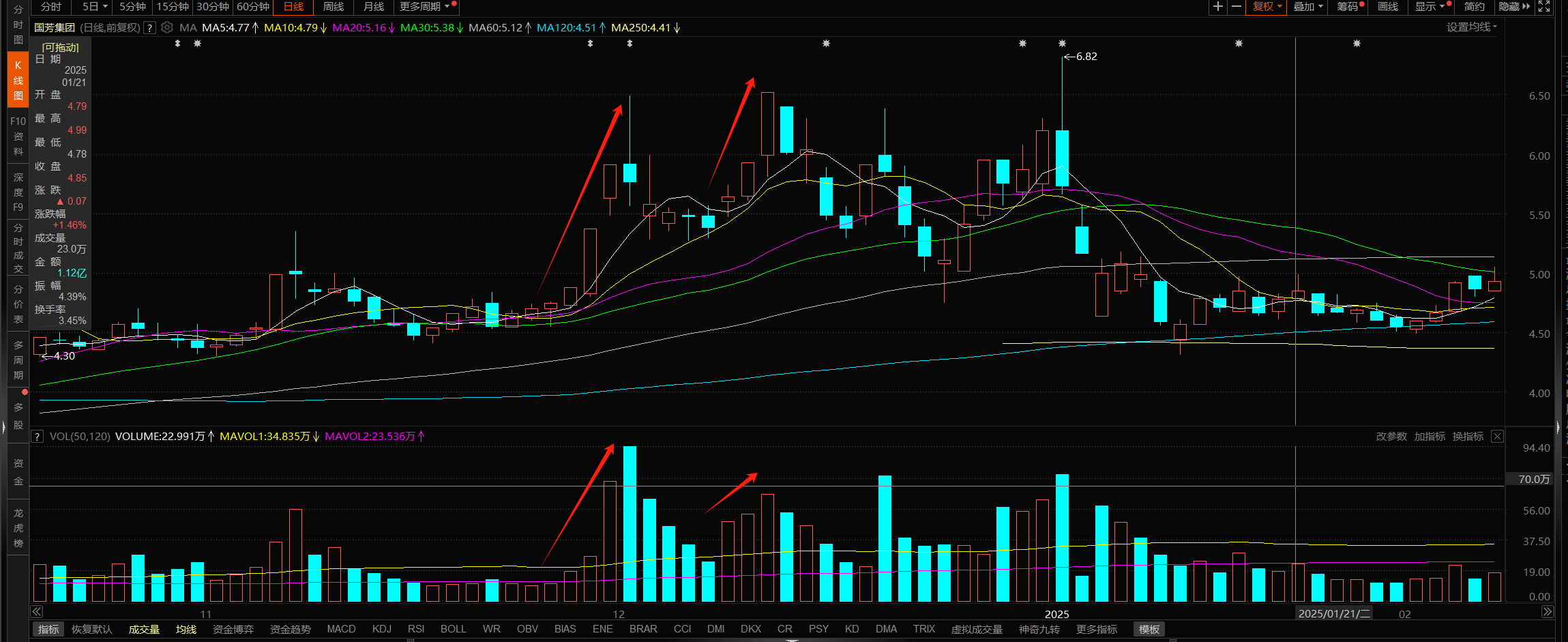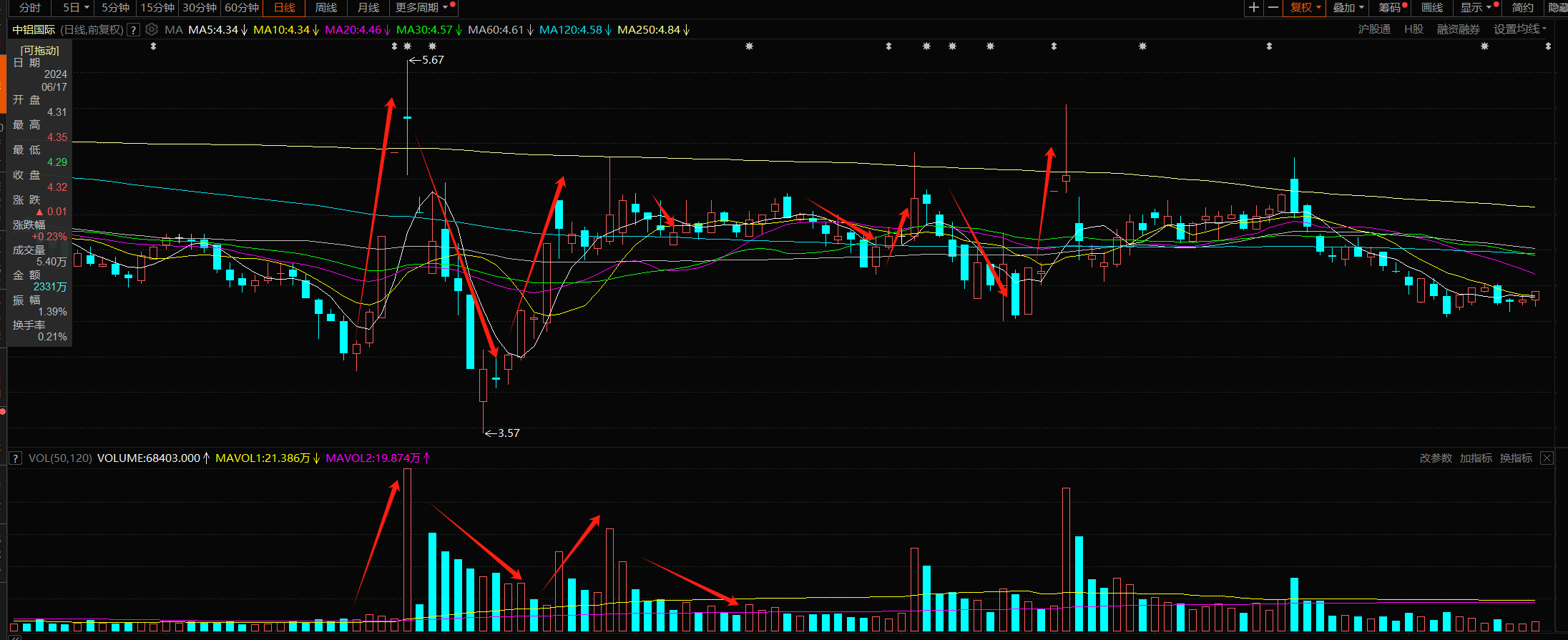 从上面三种形态我们可以得知,要么成交量能一直放大,这样股票一直都是上升趋势,要么股票有规律性的放量,这样我们可以再关键时候抄底